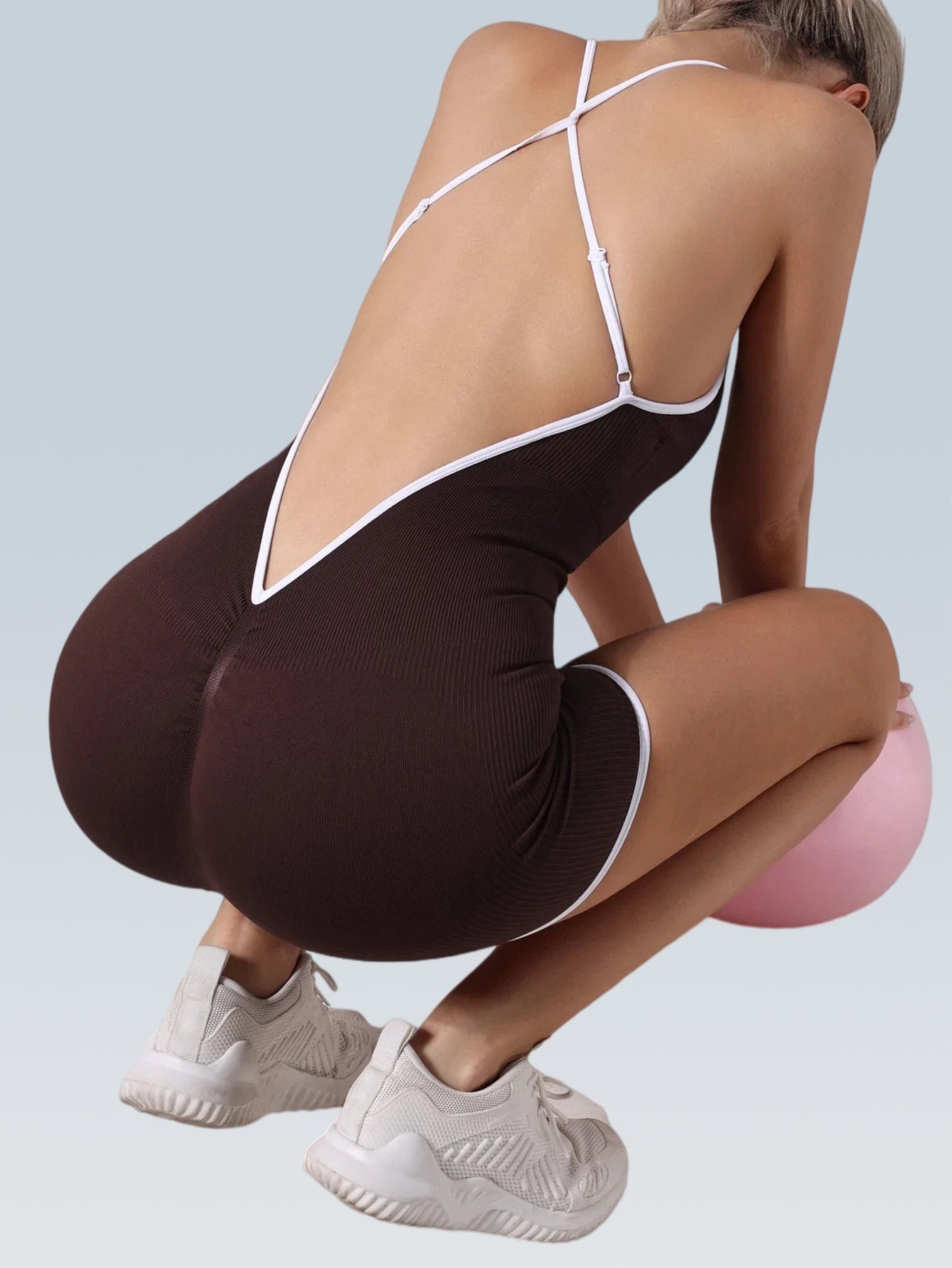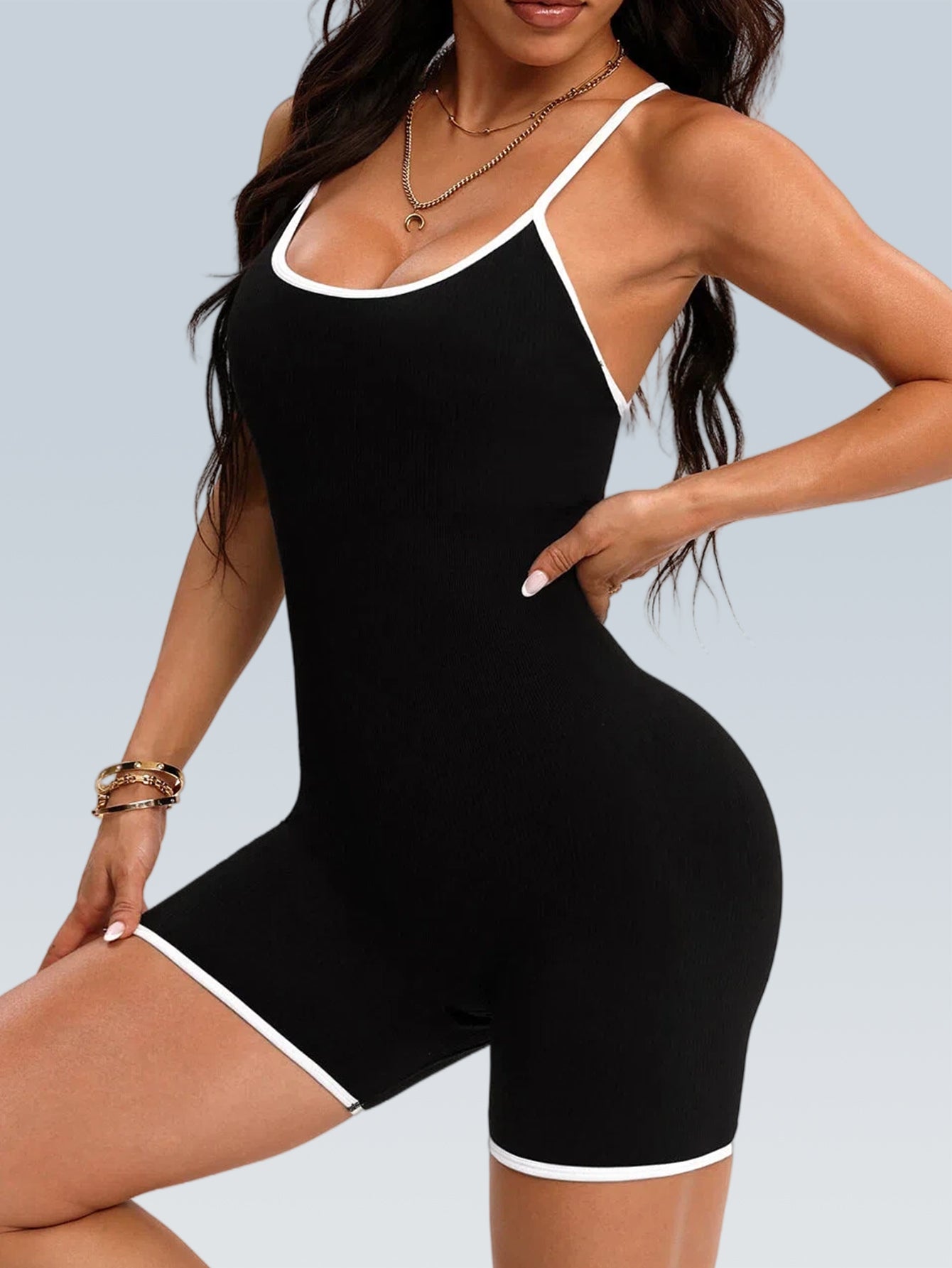 Contrast Padded One-Piece Bodysuit | Open Back, Squat Proof – Matching Workout Set