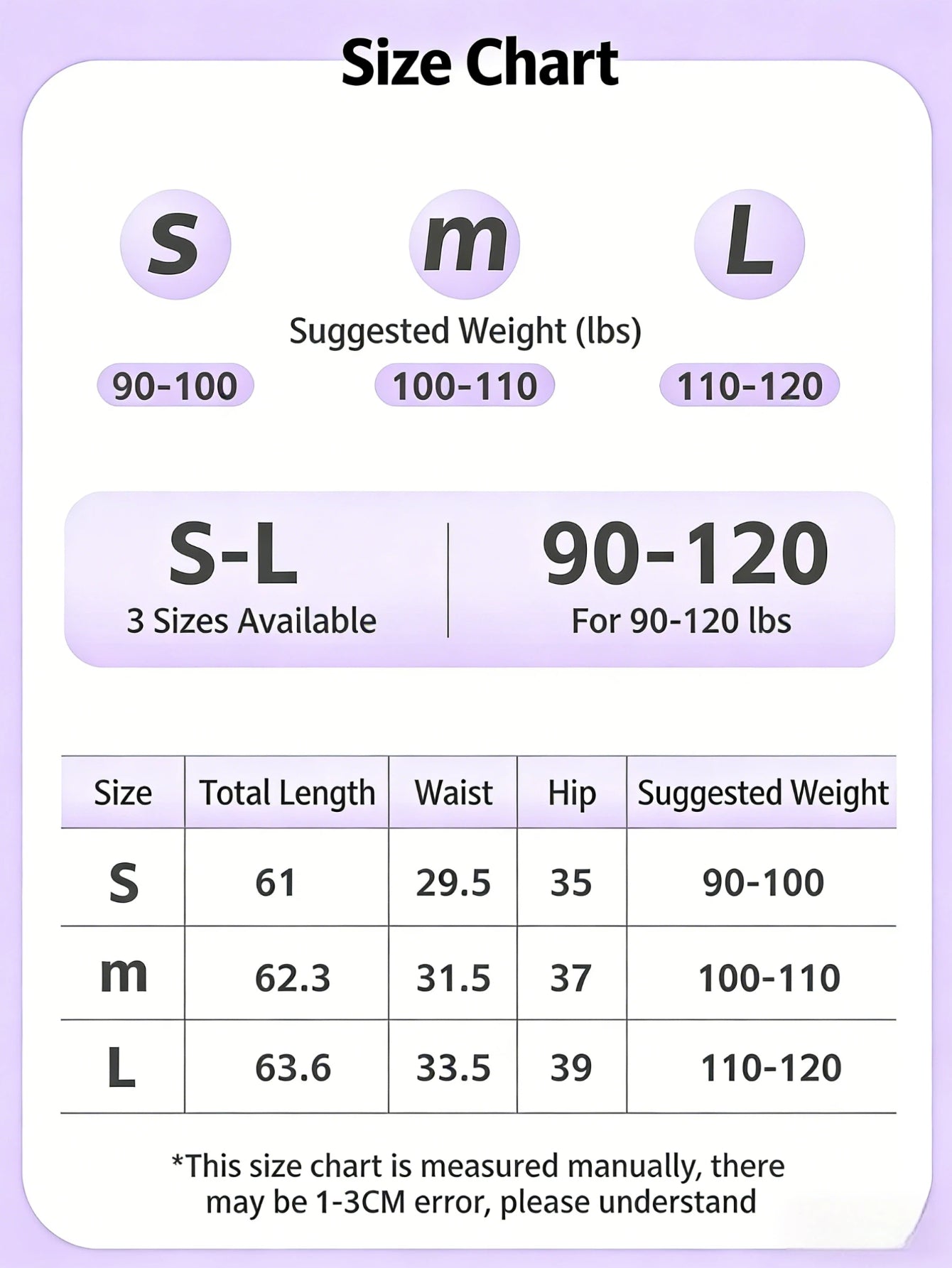| Size | Bust (in) | Waist (in) | Hip (in) | Recommended Weight |
